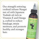 An exotic hair and scalp blend for breaking, damaged, and splitting hair. The recipe our strength restoring cocktail infuses Nangai nut oil with Japanese Tsubaki oil rich in Vitamin E and Omega 3, crafted to prevent breakage, retain moisture, and promote healthy and stronger hair.